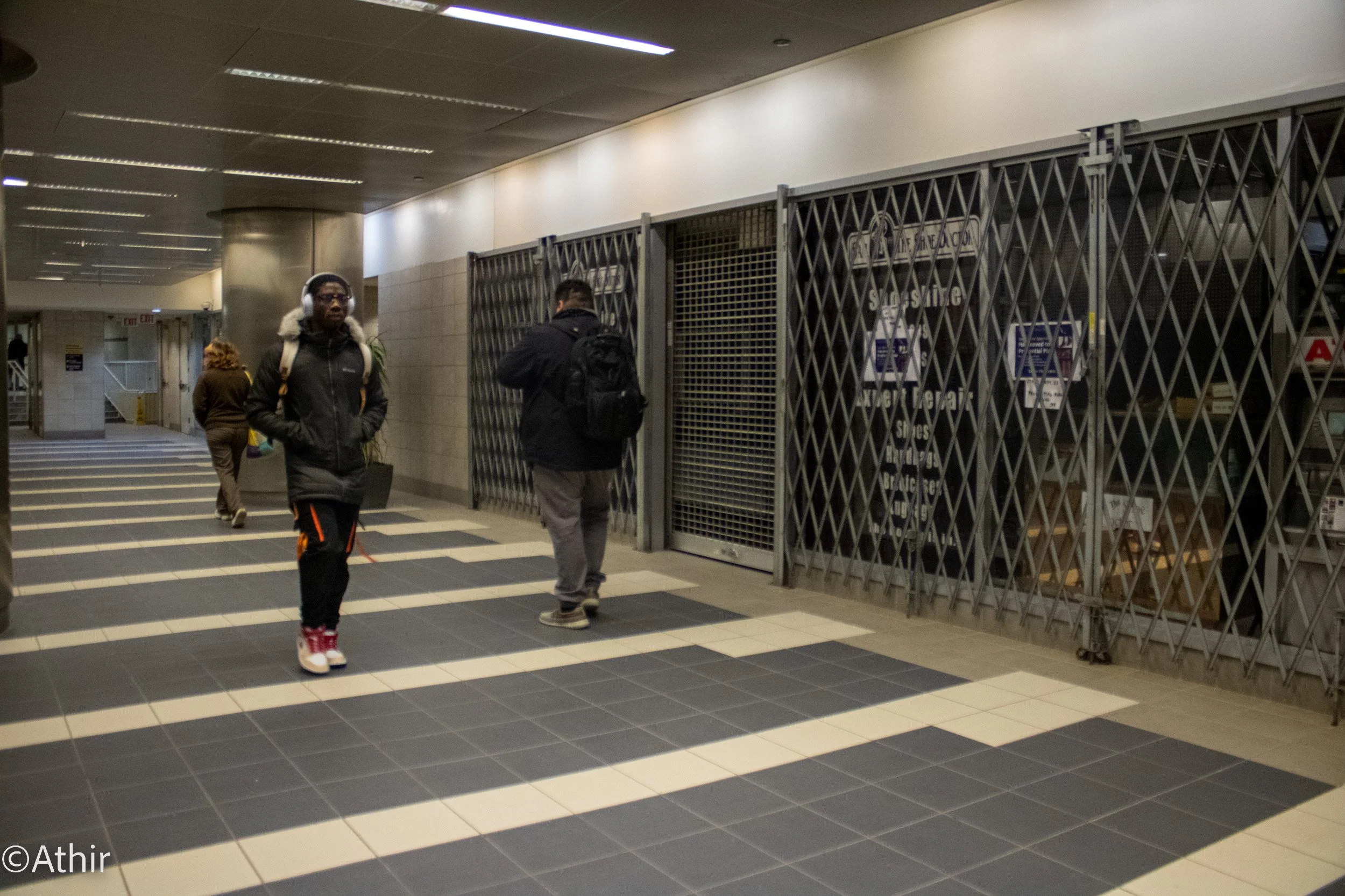 Hallways leading to some streets have almost no foot traffic in the Pedway, even during rush hour, denying some pedestrians of convenient shortcuts Friday, Dec 2. 2022. Chicago, IL USA. Photo by Athir.